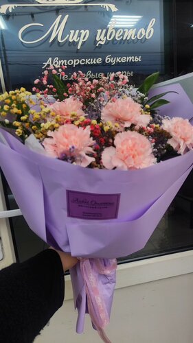 Приехали в гости срочно нужны были цветы и шары , зашли в мир цветов , флорист чуткая девушка помогла с выбором букета собрали два букета хотя планирование брать один , букеты раскошные получились , плюс и шары у них как хорошо что мы зашли к ним теперь только к ним и всем будем советовать !